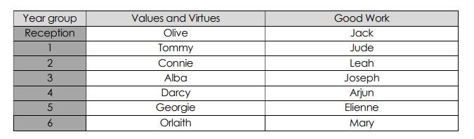 The following children have received a certificate in today’s Gifts from God assembly. Well done children!