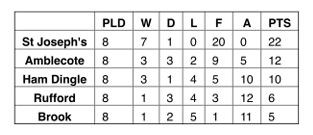 Well done to our Y5/Y6 girls team who have won their league and now qualify for a regional final in the summer term! Thank you to Mrs Lloyd, Miss Carr and the parents who supported the girls! Look at the league table below – extremely impressive girls!