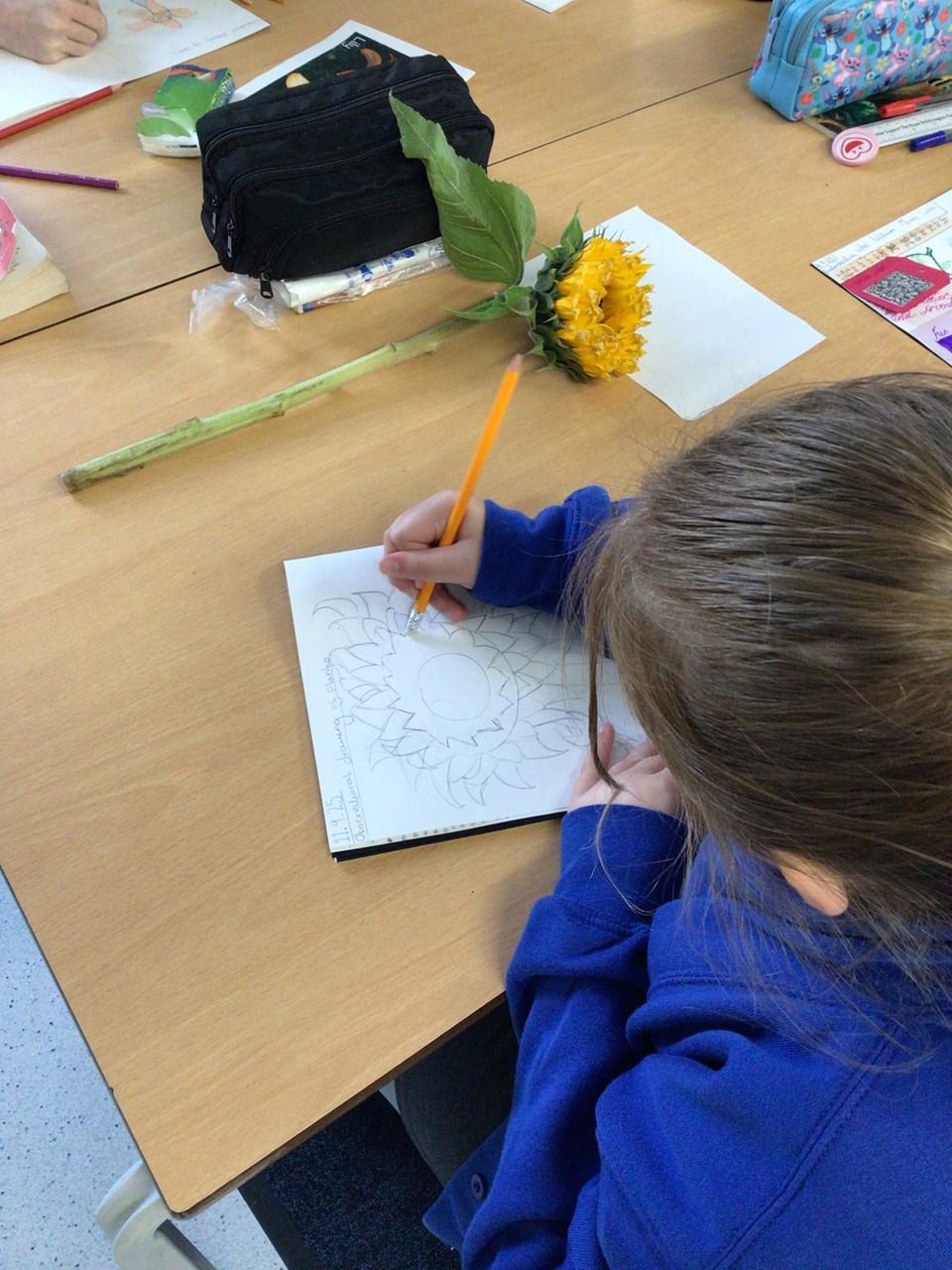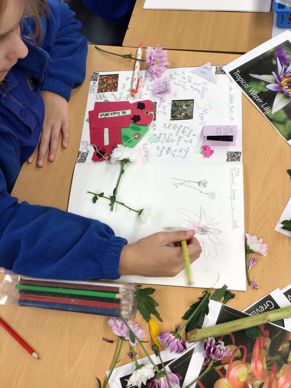Year 6 observational drawings of flowers inspired by William Morris but also appreciating God's wonderful creation!
