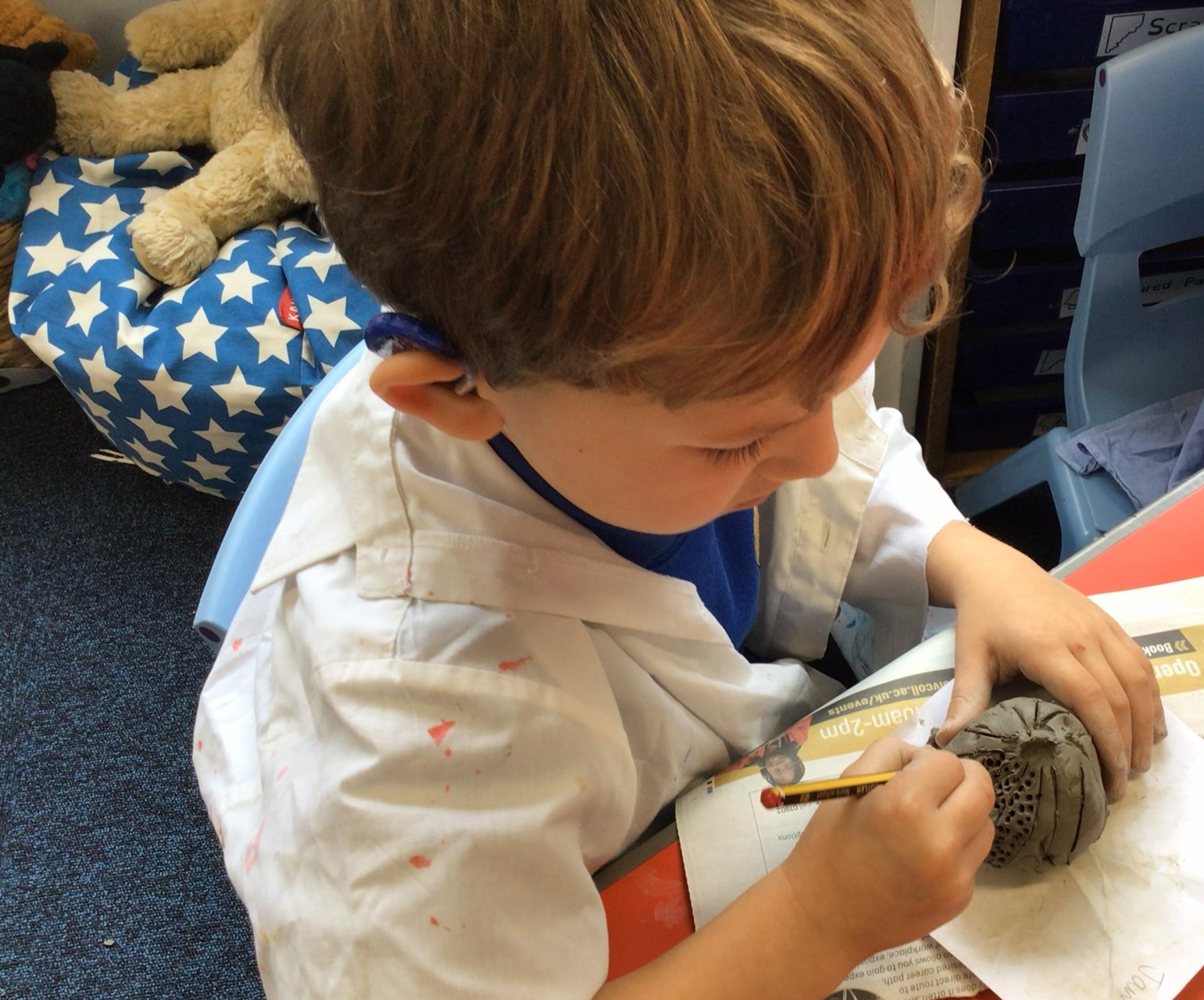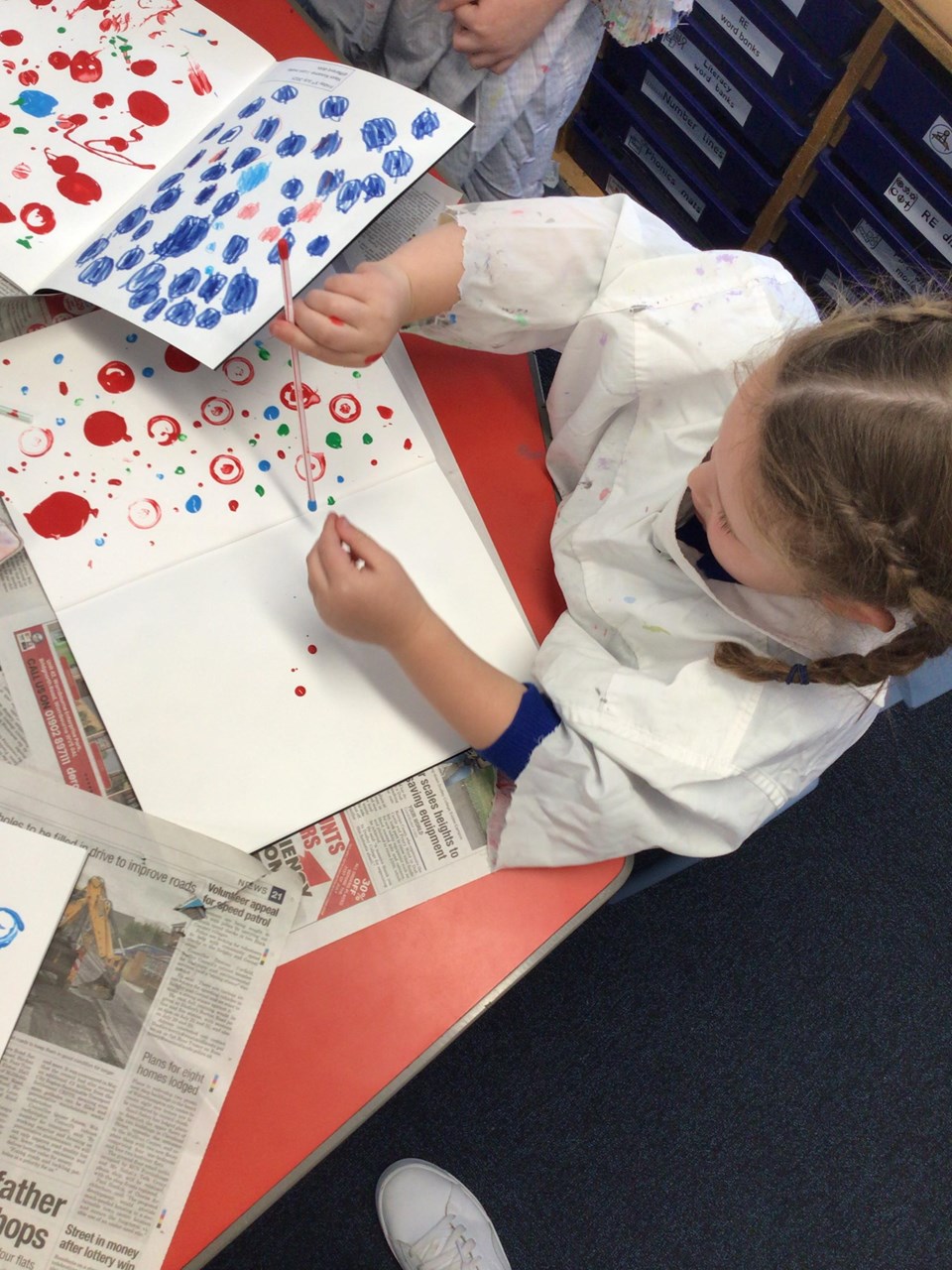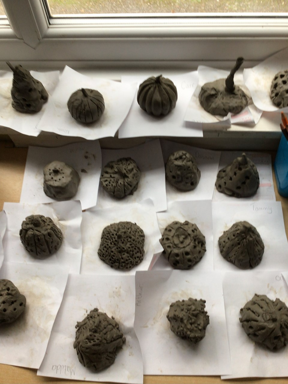 Year 1 - Creating clay pumpkins. We used tools to create dots and stripes like Yayoi Kusama. Also, exploring making dots with paint- Yayoi Kusama inspired too!