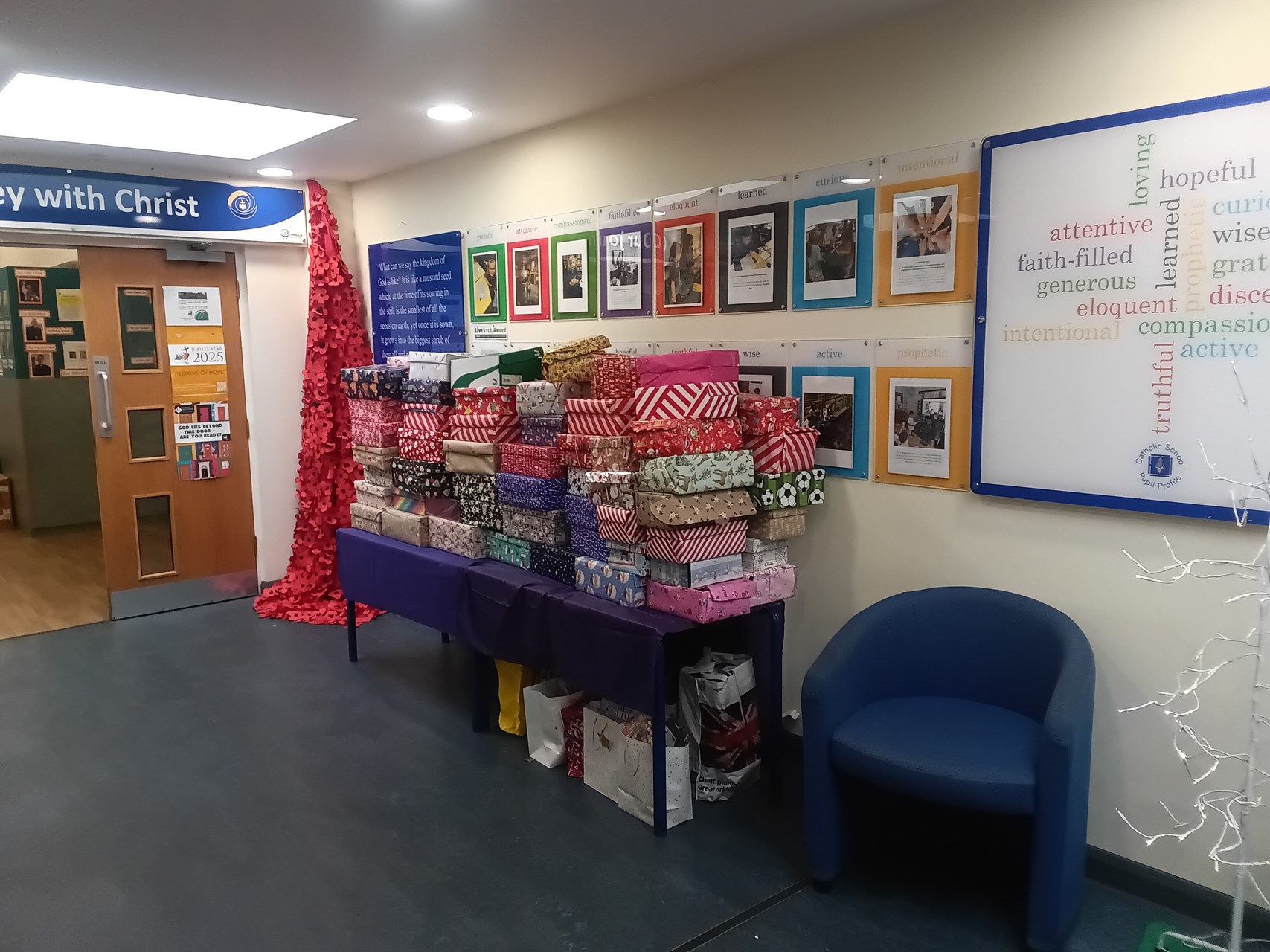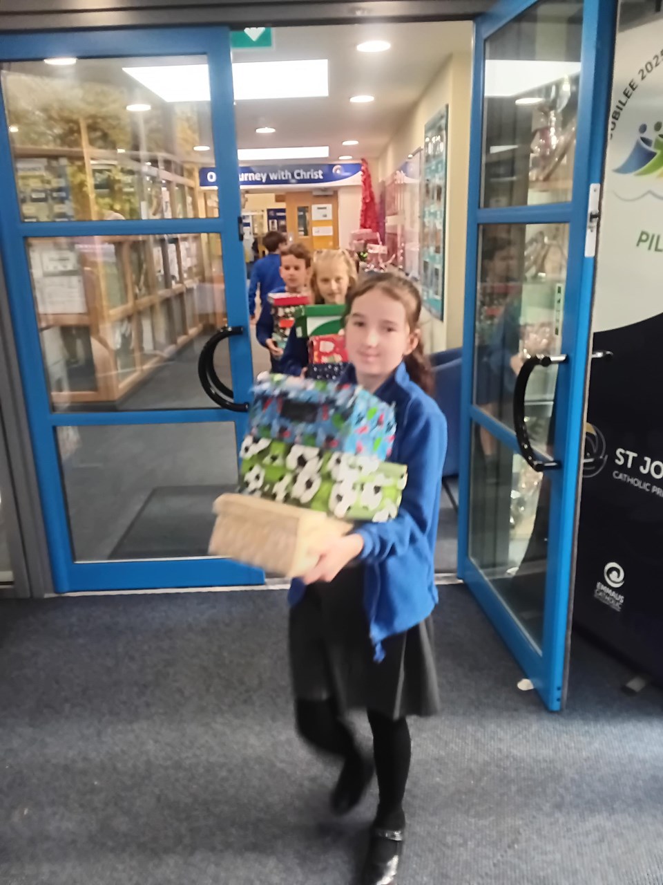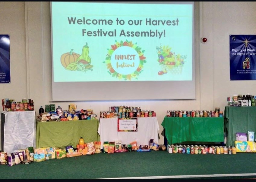 Children raised money for CAFOD and collected food for the food bank ! The children wore bright clothes to "Brighten up the Harvest".