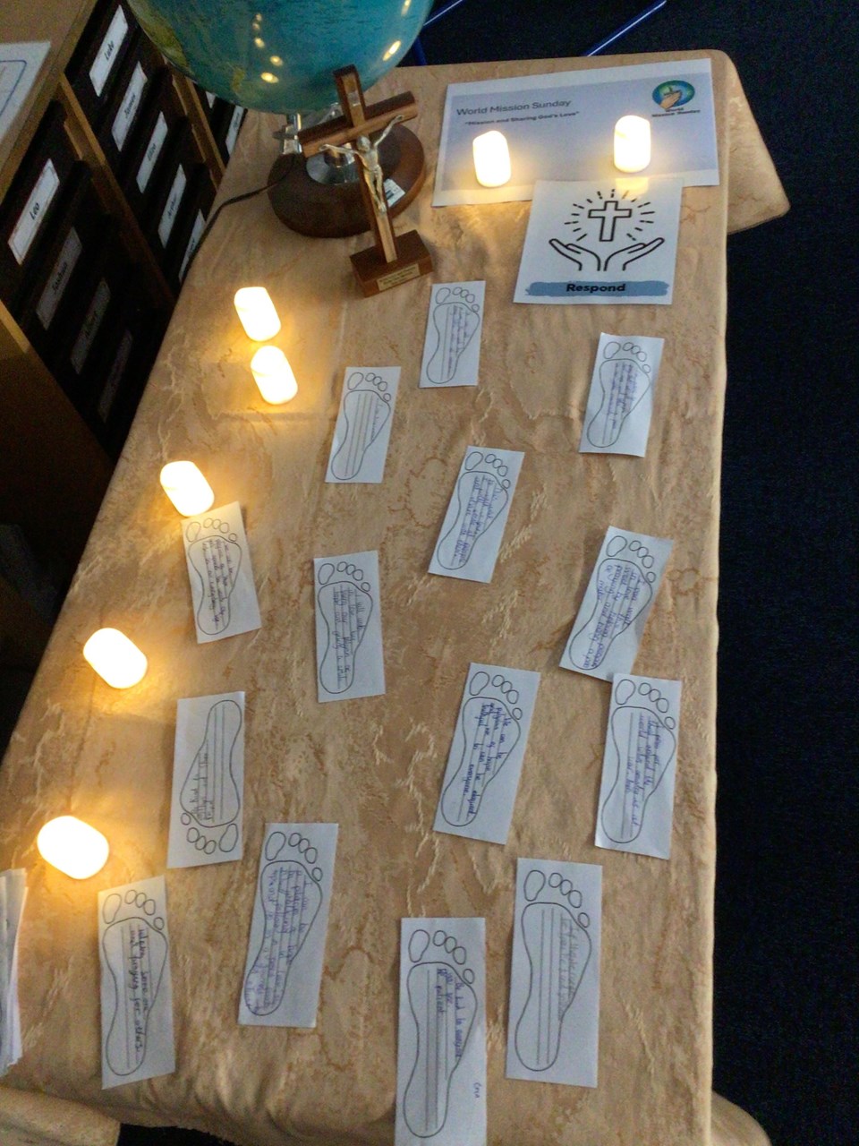Year 6 stay and pray - reflecting on Mission Sunday and how we can "Walk with love" this week being missionaries in today's world.